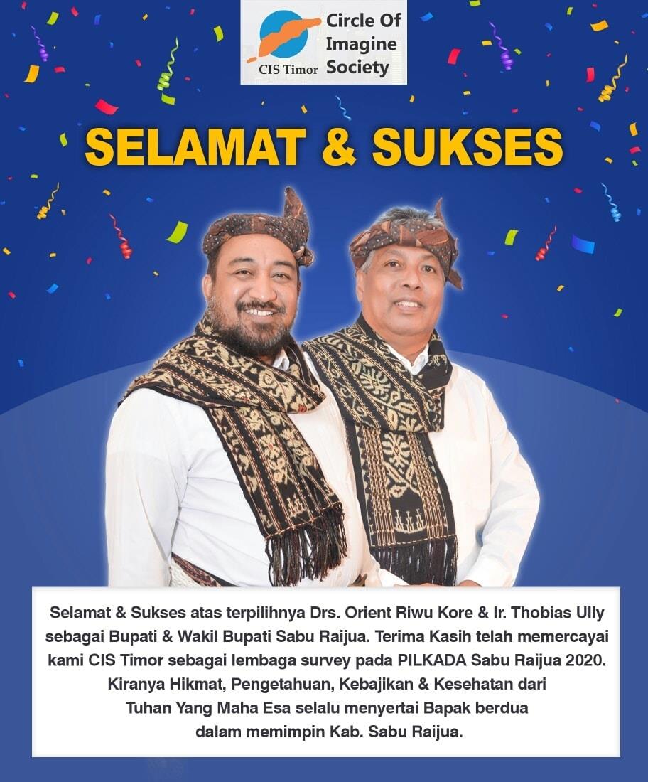 Adapun dalam Pilbub Sabu Raijua pasangan Oriet P Riwu Kore-Thobias Uly mendapatkan suara sebanyak 48.3 persen suara. Sehingga ditetapkan sebagai pemenang.