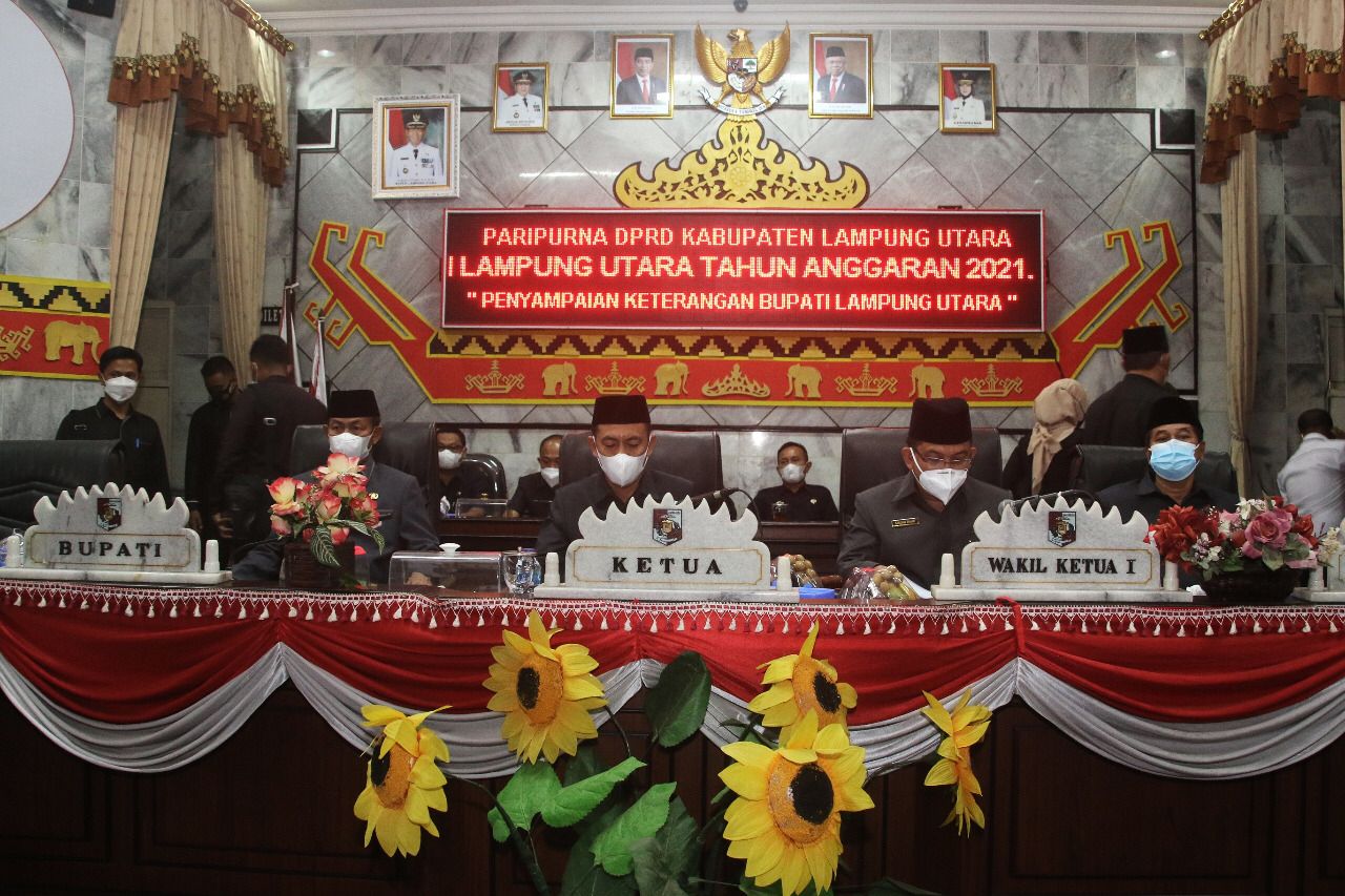 Hal itu dikatakan Bupati saat memberikan sambutan Paripurna DPRD Kabupaten Lampung Utara dalam rangka penyampaian Rancangan Perubahan KUA-PPAS Kabupaten Lampung Utara Tahun Anggaran 2021 di gedung DPRD Lampung Utara, Rabu (08/09/2021).