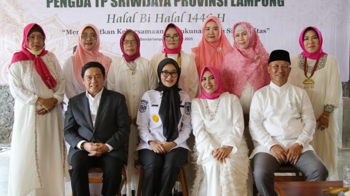 Wakil Gubernur Lampung Jihan Nurlela menghadiri Halalbihalal Tenaga Pembangunan (TP) Sriwijaya yang diselenggarakan di Resto Joglo Watu, Bandar Lampung, Rabu (23/4/2025).