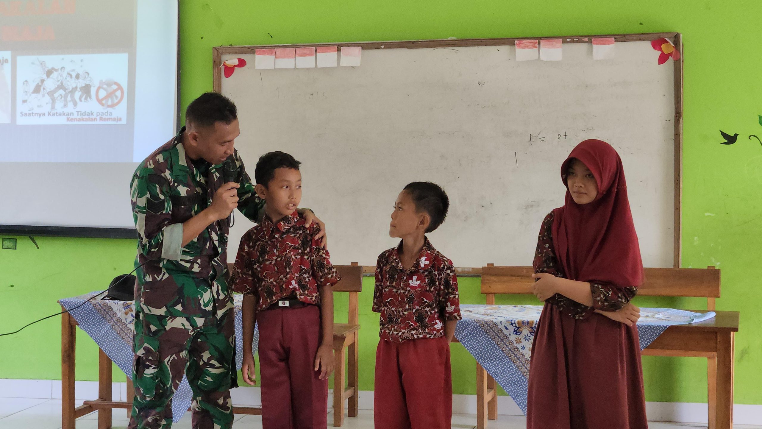 Pesisir Barat – Dalam rangka pelaksanaan TNI Manunggal Membangun Desa (TMMD) ke-124, Kodim 0422/Lampung Barat memberikan penyuluhan wawasan kebangsaan kepada siswa-siswi Sekolah Dasar Negeri 19 Krui Pekon Pemerihan, Kecamatan Bangkunat, Kabupaten Pesisir Barat, pada Jumat 9 Mei 2025