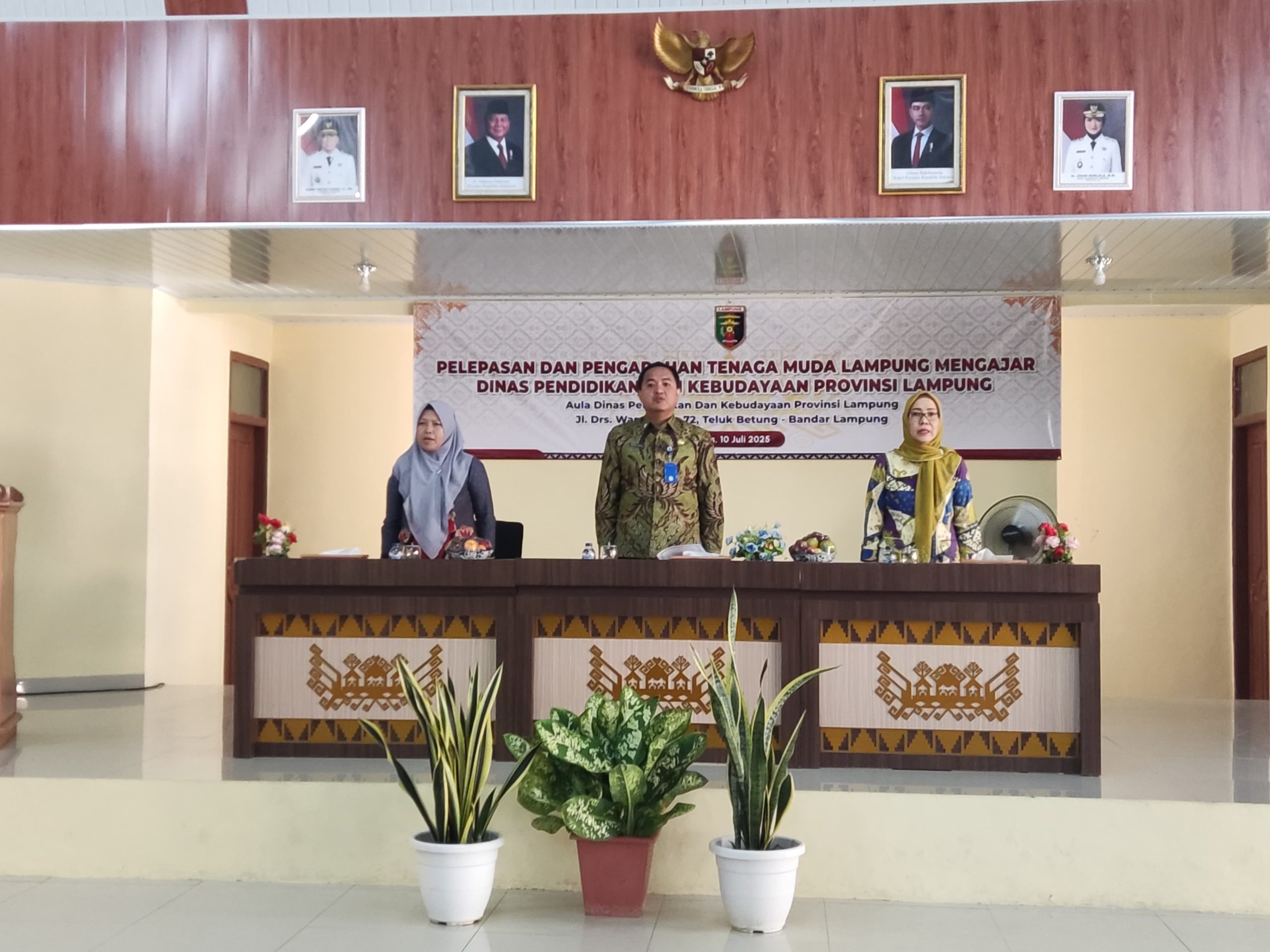 BANDAR LAMPUNG — Dinas Pendidikan dan Kebudayaan (Disdikbud) Provinsi Lampung menggelar acara pelepasan 120 Tenaga Muda Lampung Mengajar yang siap diterjunkan ke berbagai pelosok daerah. Acara ini berlangsung di Aula Disdikbud, Jalan Drs. Warsito, Telukbetung, pada Kamis (10/07).