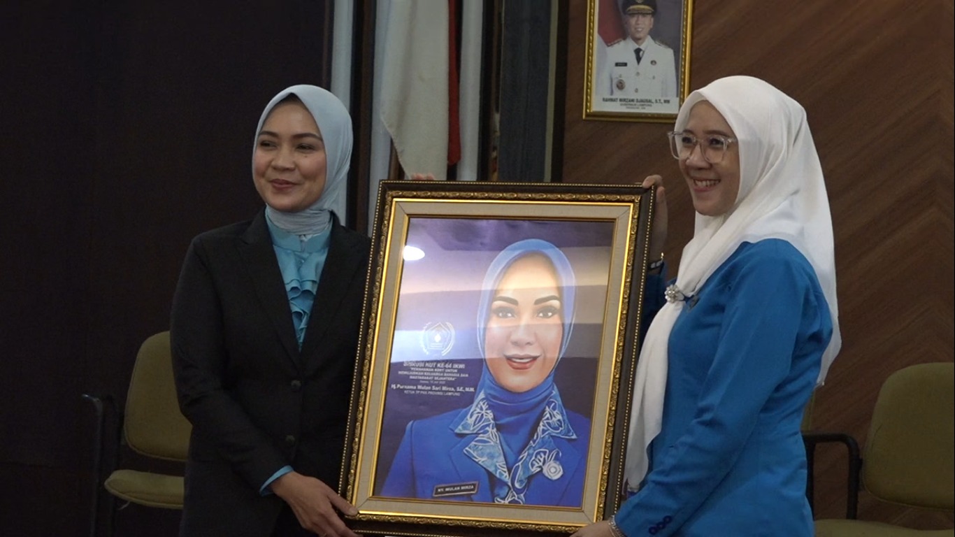 Kegiatan peringatan HUT Ke-64 ini digelar di Balai Keratun, Kantor Gubernur Lampung. Ketua TP PKK Provinsi Lampung, Purnama Wulan Mirza dan Ketua Dharmawanita Persatuan Provinsi Lampung, Agnesia Bulan Marindo.