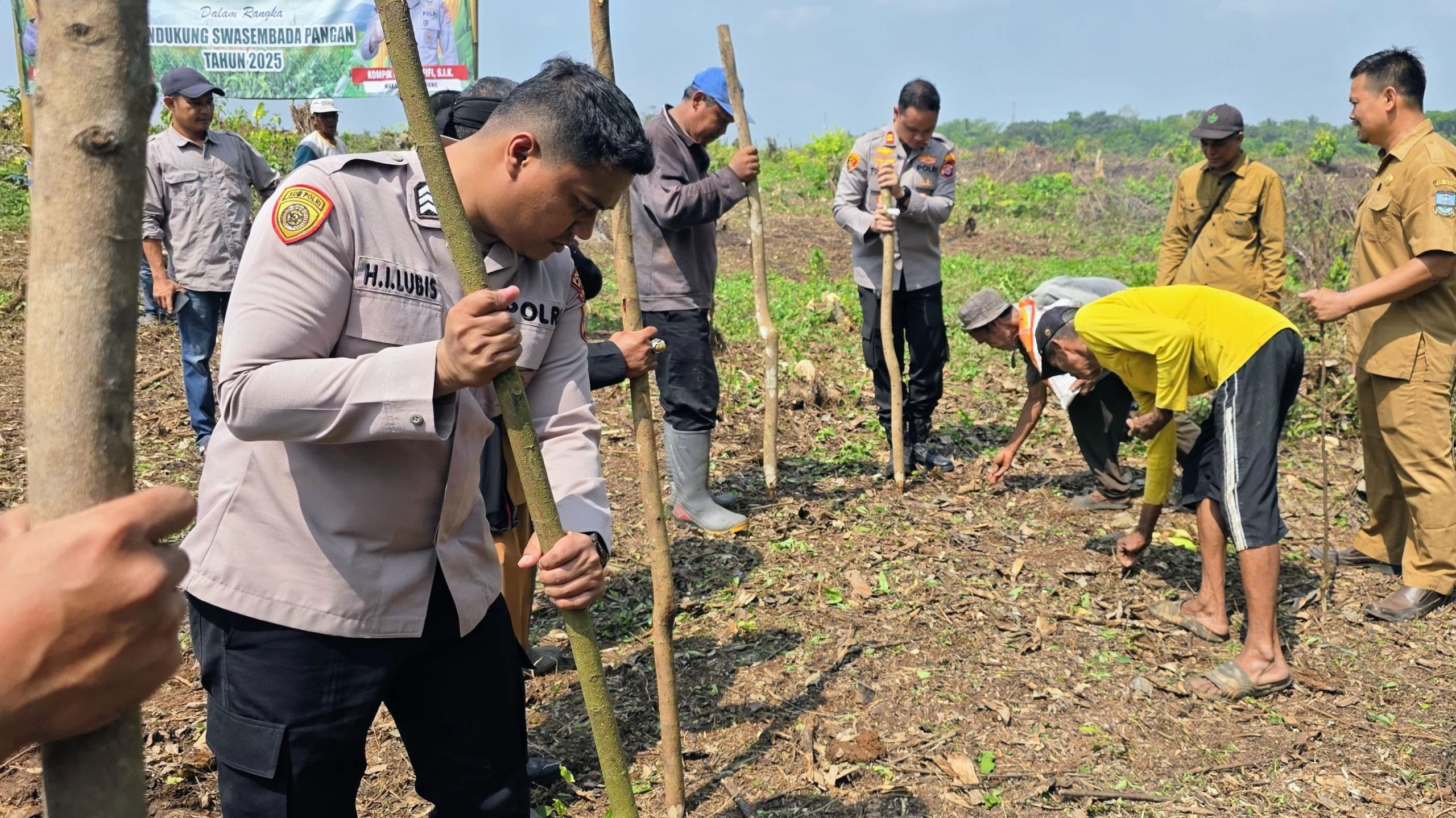 Penanaman jagung dilakukan di atas lahan seluas 5.000 meter persegi milik warga bernama Hesen Susanto. Kegiatan ini dipimpin langsung oleh Kapolsek Petir, IPTU Fuqon Saibatin Singajuru, S.Tr.K, M.Si, dengan dukungan dari berbagai elemen masyarakat dan instansi terkait.