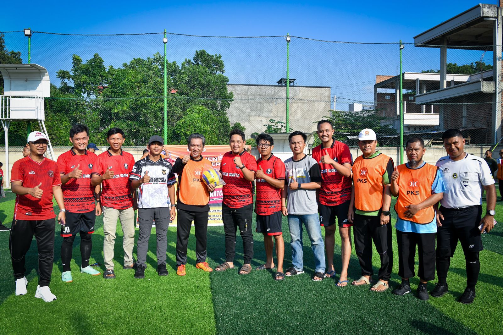 Lampung – Presiden PKS Al Muzzammil Yusuf, menggelar pertandingan persahabatan sepak bola mini bersama tim jurnalis Pojok Warta FC di Lapangan Mini Soccer Sportera, Way Hui, Bandar Lampung, Minggu pagi, 3 Agustus 2025.