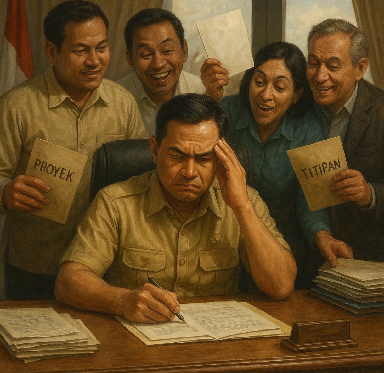 Di beberapa daerah, bahkan muncul istilah baru yakni Tim Makan Siang (TMS) sekelompok loyalis yang setiap hari nongkrong di kantor kepala daerah, mengatur tamu, menjual akses, dan menyodorkan proposal proyek atas nama perjuangan.