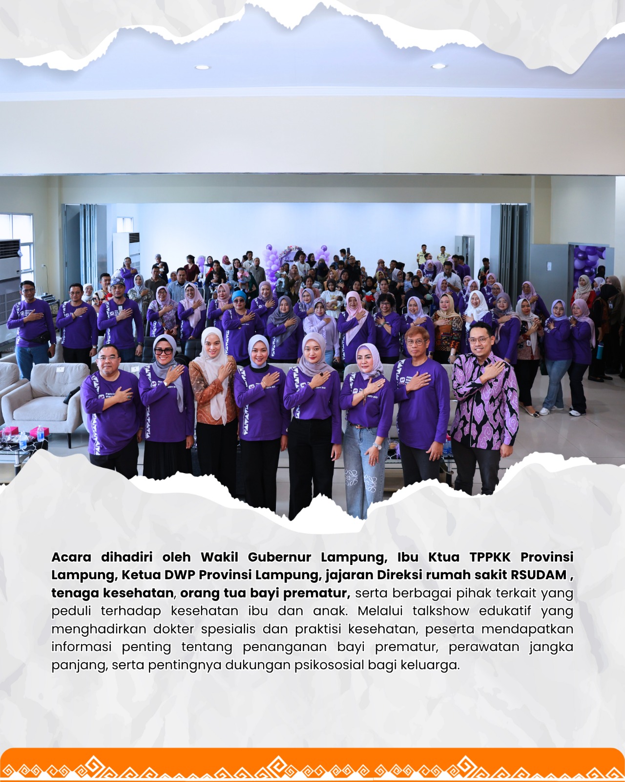 Peringatan Hari Prematur Sedunia merupakan momentum penting untuk meningkatkan kesadaran masyarakat akan pentingnya pencegahan, deteksi dini, serta penanganan komprehensif terhadap bayi prematur. Melalui kegiatan edukasi, diskusi ilmiah, serta sharing pengalaman orang tua yang pernah merawat bayi prematur, RSUD Dr. H. Abdul Moeloek kembali menegaskan komitmennya dalam memperkuat layanan kesehatan ibu dan anak di Provinsi Lampung.