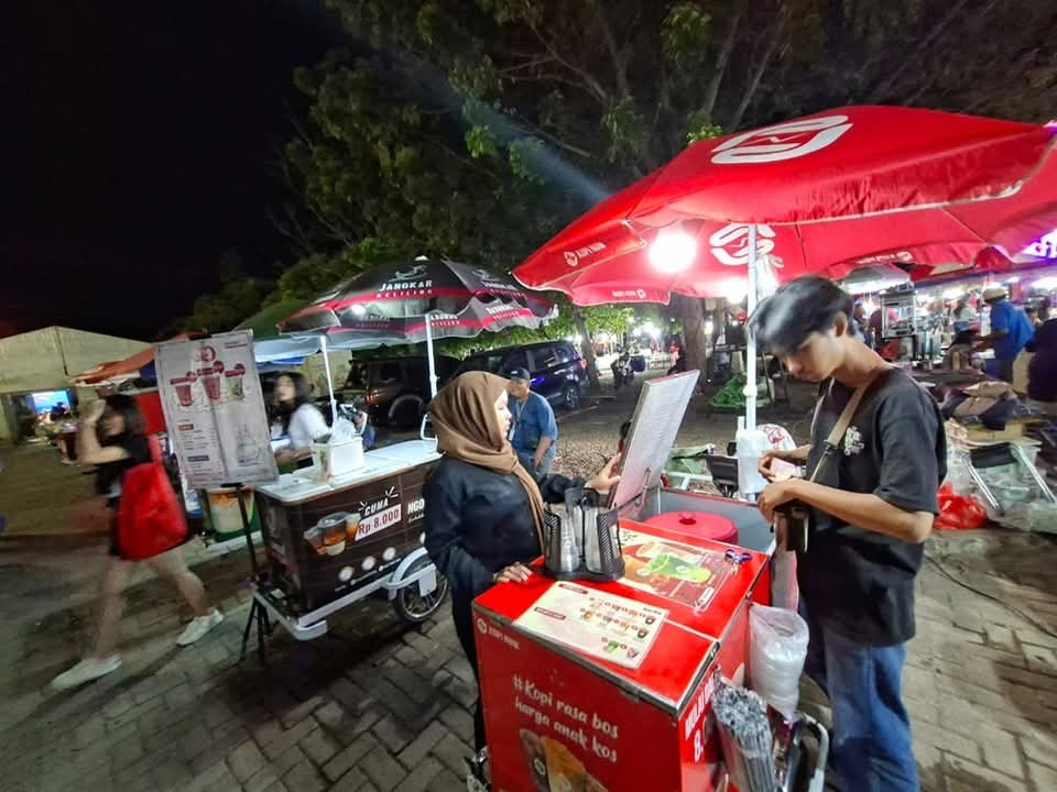 Dengan harga Rp 8.000–12.000 per cangkir, para pedagang keliling menjadi pilihan banyak pengunjung yang membutuhkan kopi cepat dan terjangkau.